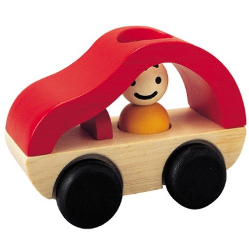My son has several Plan Toys that we love. This one has been a disappointment. The little person inside the car is supposed to come in and out, but even my husband can hardly wedge him in and out of the car. Also if the man is in the car, my son gets his hands pinched between the man and the car.